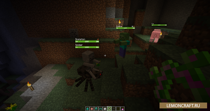 Мод Neat дает возможность видеть сколько осталось здоровья у моба. Данная информация отображается в виде небольшой табличке, где видно имя моба и сколько ХП у него осталось. Учтите, что узнать здоровье моба вы можете лишь в том случае, когда между вами нет препятствий.